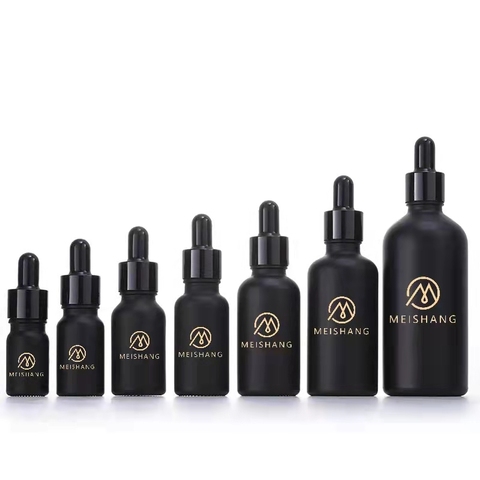 Ölçüm pipet ve kağıt ambalaj ile en çok satan 5ml10ml15ml30ml50ml100ml siyah buzlu kozmetik uçucu yağ şişe